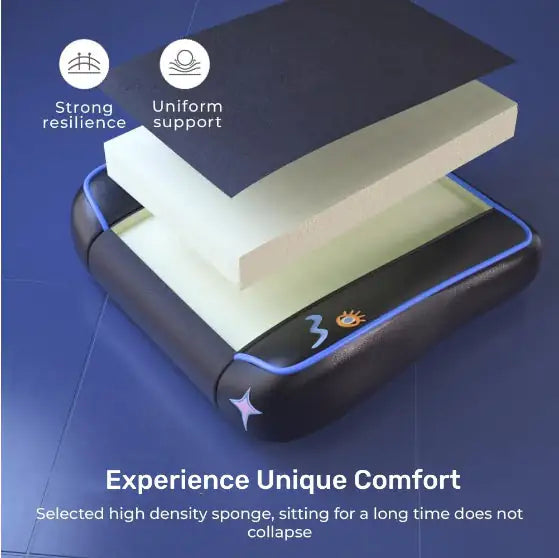 Experience all-day comfort with dynamic lumbar support that automatically adjusts to your posture, ensuring proper spinal alignment and reducing back fatigue. The padded, high-density foam seat offers superior resilience and even weight distribution, so you can stay comfortable and focused during long gaming or work hours.